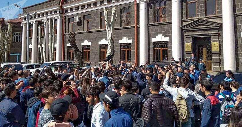 Учащиеся старших школ и гимназий, а также студенты некоторых колледжей и вузов вышли утром на демонстрацию в Гюмри.