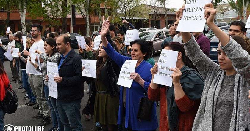 Участники митингов против премьерства 3-го президента Армении Сержа Саргсяна продолжают проводить акции по принципу системной, децентрализованной борьбы, провозглашенной лидером движения, т.н. «Бархатной революции», – руководителем оппозиционной парламентской фракции «Елк» («Выход»), членом правления входящей в одноименный блок партии «Гражданский договор» Николом Пашиняном.