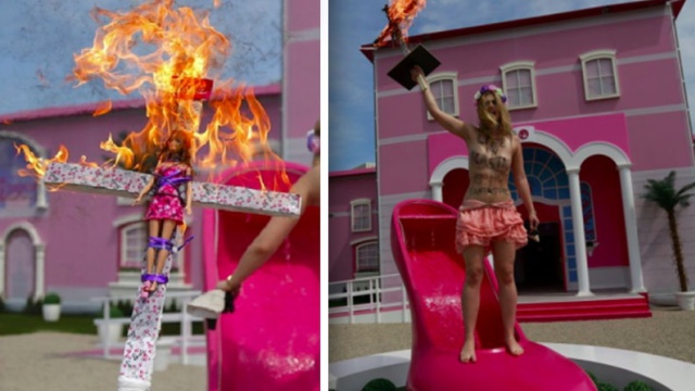 Новая акция украинских феминисток: FEMEN наследили в Берлине, где подходит к концу строительство Дома Барби. Девушки по традиции обнажились по пояс, продемонстрировав на теле надписи «Жизнь в пластике — это не фантастика».