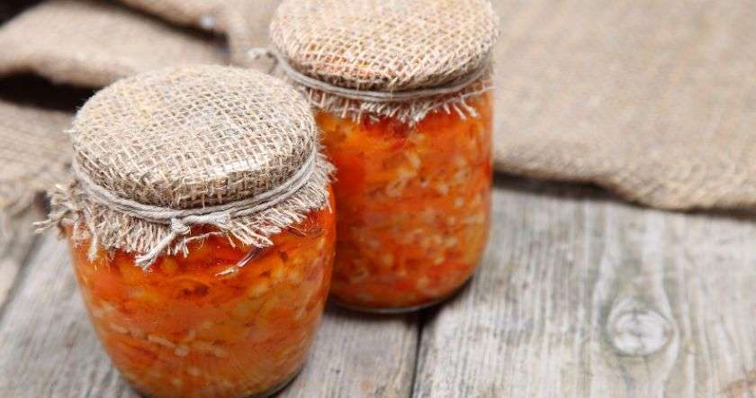 - А вот теперь самое время придать закуске остроты и пикантности. За 5 минут до окончания варки добавь к салату перец, мелко нарезанный чеснок и уксусную эссенцию. Готовую горячую закуску разложи по стерилизованным банкам и закатай. После переверни вверх дном, накрой теплым одеялом и оставь до полного остывания.