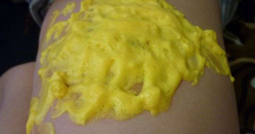 Чтобы избавиться от мозолей, необходимо наложить состав на место мозоли, укутать тканью или бинтом и оставить на ночь, утром смыть теплой водой.