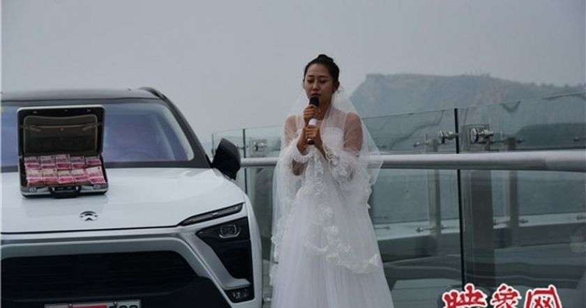 Девушка в свадебном платье загнала на стеклянный мост новый внедорожник, поставила на капот набитый деньгами чемодан (14 500 долларов) и предложила парню себя и приданое, если он преодолеет свой страх — пройдет по мосту. Бойфренд, которого ненавязчиво к месту предложения привели друзья, к такому повороту оказался не готов. Правда, он попытался побороть свою фобию, но в итоге плюнул и ушел, назвав свою невесту безответственной.