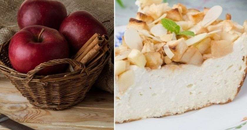 - Теперь переходим к яблокам. Их нужно очистить от кожуры и порезать тонкими дольками. Вставь дольки яблок в творожную массу друг за другом.