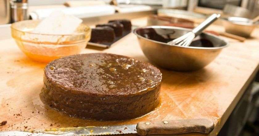- Переложи тесто в смазанную форму и поставь в духовку на 20–25 минут. Выпекай при температуре 200 градусов. После готовности смажь верхушку пирога вареньем, пока он горячий. Оставь, пусть остынет, а затем можно подавать к столу!