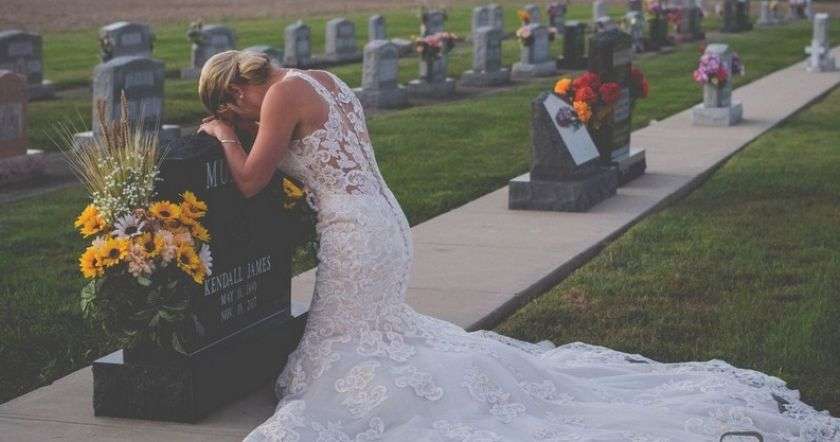 Это тот самый душераздирающий момент, когда молодая невеста из США склонилась в слезах над могилой своего жениха в день, когда пара должна была отправиться под венец.