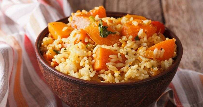Часто случается, что мы пробуем продукт в неверном месте или не в том блюде, а после навсегда вычеркиваем его из своего рациона. Если ты из тех, кто не особо жалует тыкву — дай ей шанс! Правильный рис, кусочек масла и сладкая тыква сведут твои рецепторы с ума, стоит только смешать их в одной тарелке. Очень кремовое, ароматное, нежное блюдо… Кажется, мы можем часами рассказывать, насколько это вкусно, но лучше разок покажем. Записывай скорее!