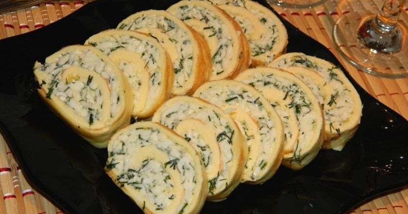 - Яичный рулет с начинкой готов. Нарежь его кружочками и подавай к столу. Приятного аппетита!