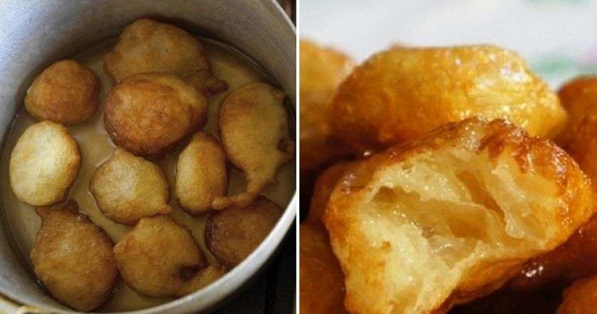 - Когда тесто подойдет, нагрей стакан масла в сотейнике или фритюрнице, с помощью ложки выкладывай тесто в масло и обжаривай с двух сторон до подрумянивания.