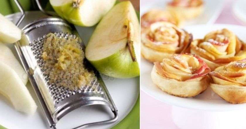 - Вымой, очисти и натри на крупной терке яблоко, а затем подмешай его к мучной основе.