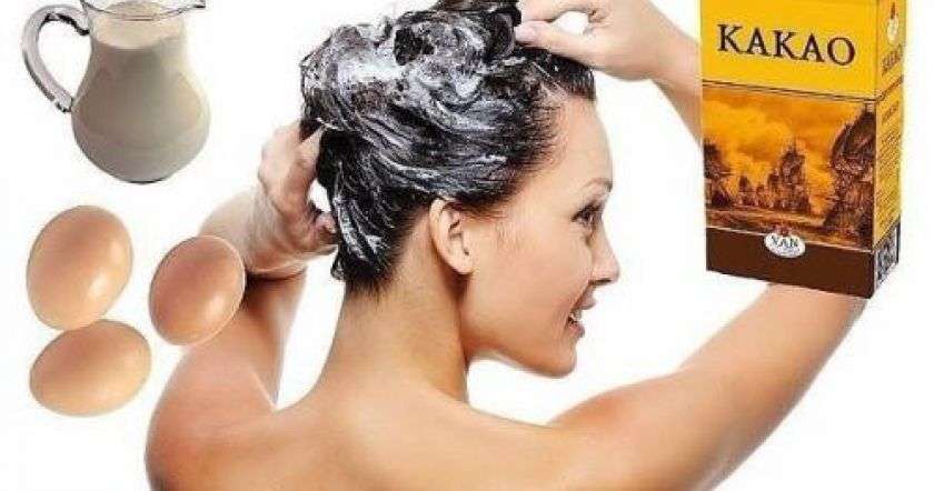 * 1/2 стакана кефира, * 1 яйцо, * 1 чайная ложка какао, перемешать все и намазать голову. Чуть подсохнет - еще намазать. И так, пока вся порция не закончится. Завязать пленкой и укутать голову на 20-25 минут. Голову детским шампунем вымыть. Отваром крапивы ополоснуть.
