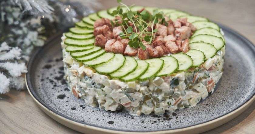 Салат оливье с подкопченным лососем от Андрея Макаева, шеф-повара ресторана Food Embassy