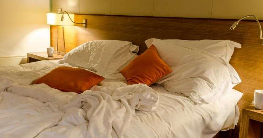 - Не заправляй кровать сразу после пробуждения. Иначе в постели образуется влажная, лишенная воздуха среда, которая для паразитов и пылевых клещей — идеальное место для размножения. Лучше пусть на кровати полчасика сохранится беспорядок и она проветрится под морозным воздухом зимой или просушится жарким воздухом летом.