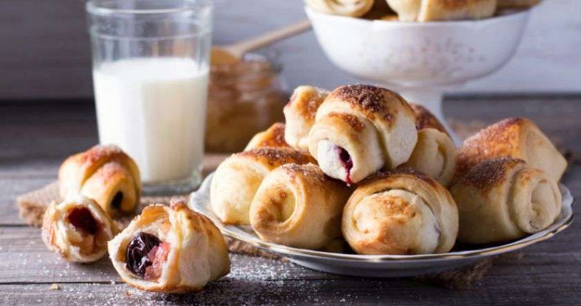 © Depositphotos - Основание треугольника из теста немного придави, положи 1 ч. л. повидла, хорошенько залепи края, чтобы начинка не вытекала в процессе запекания. Узкий конец теста слегка вытяни и заверни в виде рогалика.