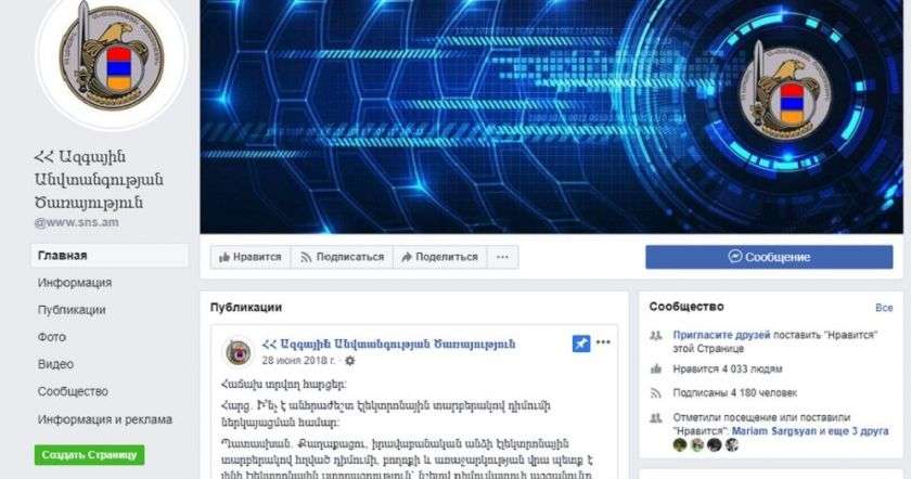 Отмечается также, что ни в одной из социальных сетей у СНБ Армении нет официальной страницы.