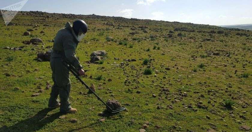 Команда специалистов из Армении по просьбе правительства Сирии должна не просто пробить коридор в минном поле, а очистить все земли от боеприпасов. Этим отличается гуманитарное разминирование от боевого.