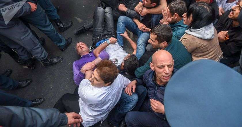 Напомним, сотрудники демонтируемых кафе вначале перекрыли дорогу на перекрестке улицы Туманяна и проспекта Маштоца. В ситуацию вмешались сотрудники полиции, началась потасовка. Митингующие уселись на асфальт, чтобы их не смогли оттащить полицейские. Однако сотрудникам полиции удалось освободить территорию от протестующих.