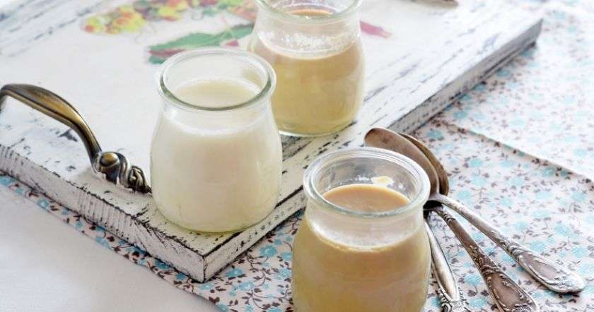 - Натуральный йогурт будет служить нам закваской. Достань его из холодильника за пару часов до смешивания с молоком и карамелью.