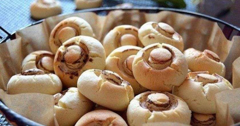 - Разогрей духовку до 180 градусов, и ставь печенье выпекаться. Выпекать «Грибочки» нужно около 15 минут