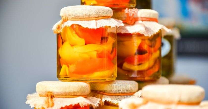 - В течение двух минут бланшируй яблоки и разложи их по банкам с перцем.