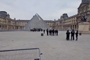 Уже во Франции супруга Трампа сияла в солнечном платье от Calvin Klein с принтом, который отлично сочетался с розовыми лабутенами.