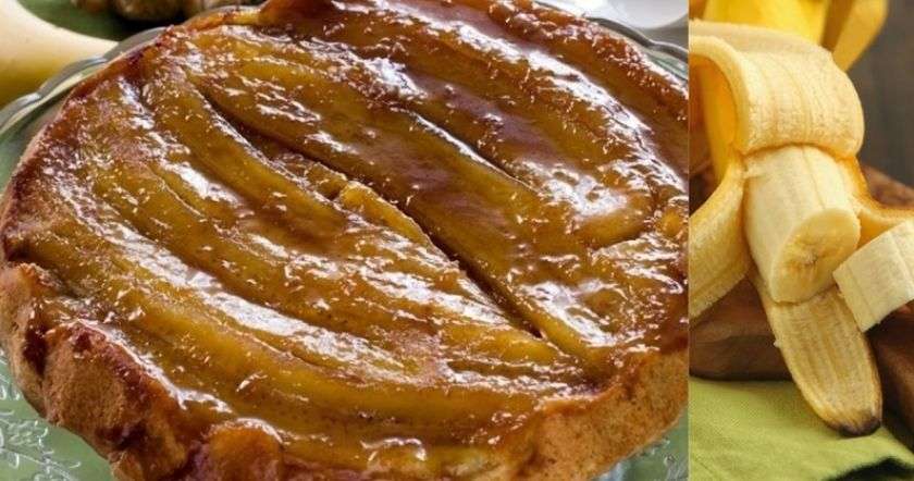 - Выпекай пирог в разогретой до 200 °C духовке на протяжении 30 минут. Когда немного остынет, переверни его карамелизированными бананами кверху. Получится простой банановый пирог, несложный в приготовлении, который при этом выглядит очень оригинально.