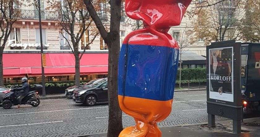 На знаменитом парижском проспекте Георга V установили скульптуру в виде конфеты в цветах армянского триколора.