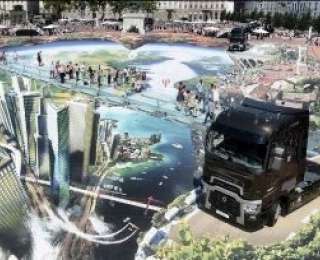 Французский художник Франсуа Абелане, в рамках рекламной компании по запуску новой лини грузовиков Renault, создал самый большой 3D-рисунок на асфальте в городе Лион. Площадь необычной картины - 4000 квадратных метров, благодаря чему она будет занесена в Книгу рекордов Гиннесса.