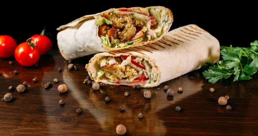 - Добавить тархун, нарезанный лук и аккуратно свернуть лаваш конвертом.