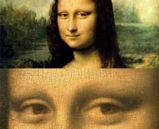 Обычно интрига крутится вокруг ее загадочной улыбки. Однако, изучив картину под микроскопом, итальянские ученые выяснили, что при многократном увеличении глаз можно увидеть числа и буквы.