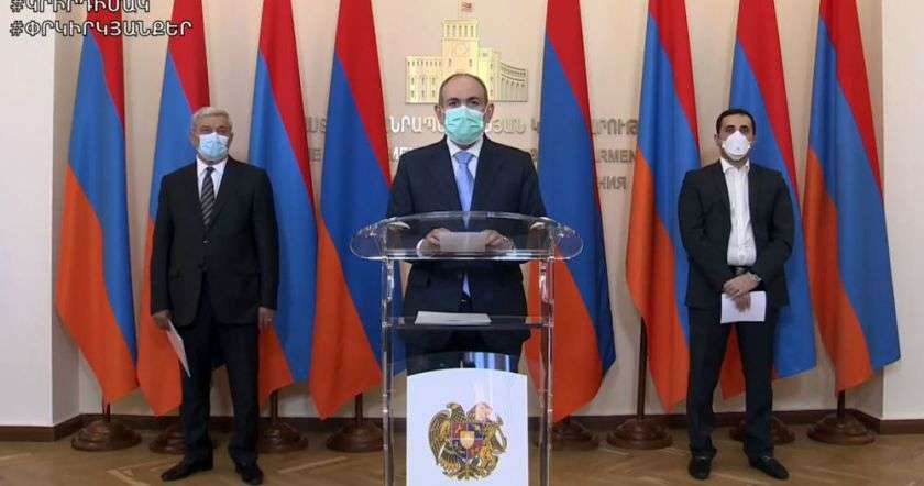 "Либо ученые изобретают вакцину против коронавируса или лекарство, и мы массово его покупаем и применяем, либо при помощи соблюдения противоэпидемических правил две недели подряд в Армении фиксируется 100 или менее случаев заражения коронавирусом. Лишь в этих двух случаях Армения моет отказаться от режима ЧП. Третьего выхода из ситуации у нас нет”, - заявил премьер.