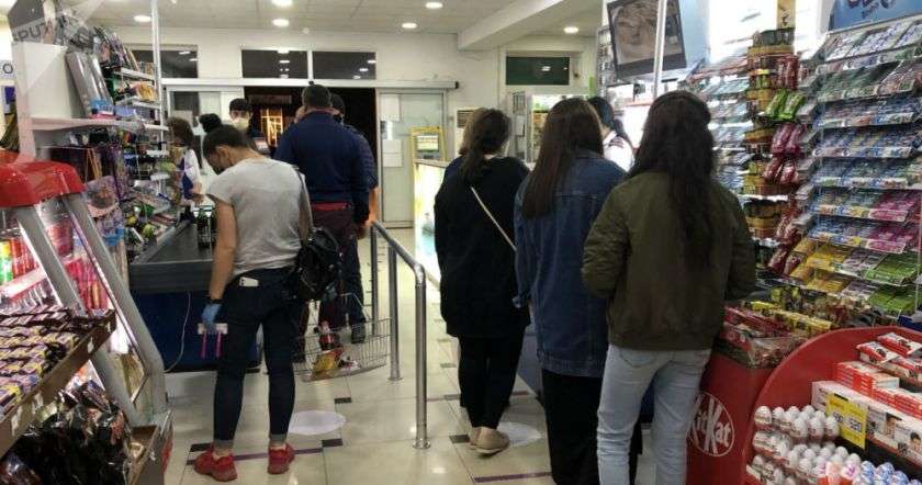 Очереди возле касс в крупных супермаркетах города (не говоря уже о магазинах) представляют собой картину из практически "слипшихся" друг с другом посетителей с масками на подбородках. Примечательно, что для такого положения дел совсем необязательно, чтобы очередь была большая. Тем не менее, ни кассирши, ни сотрудники служб охраны не утруждают себя тем, чтобы напомнить клиентам о жизненно необходимых на данный момент правилах. Чаще всего никаких разметок, разграничительных линий и прочего тоже нет.