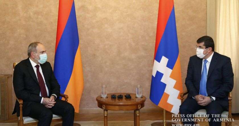Премьер-министр Армении Никол Пашинян с рабочим визитом находится в Республике Арцах (Нагорно-Карабахской Республике (НКР)). В Степанакерте состоялась встреча Пашиняна с президентом Арцаха Араиком Арутюняном. Об этом сообщается на официальном сайте премьера Армении.