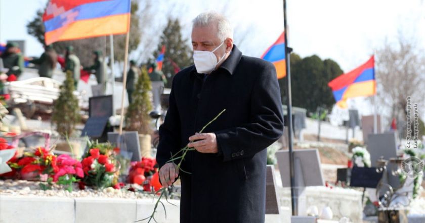 Военное руководство Армении в пятницу посетило военный пантеон "Ераблур", чтобы почтить память героев Апрельской войны 2016 года в Карабахе.