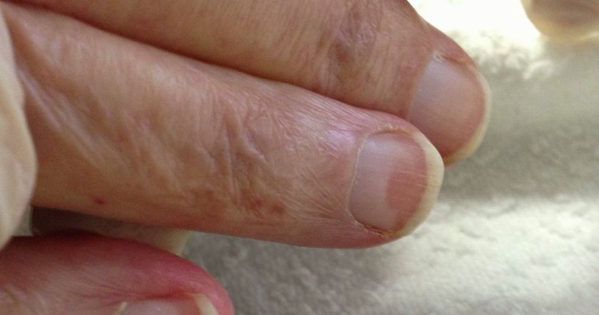 Хотя одышка и измененная частота сердечных сокращений являются симптомами, наиболее часто связанными с ЗСН, существует гораздо менее известный, проявляющийся изменениями на ногтях. Это состояние, известное как ногти Терри. Большая часть ногтя становится бледно-белой, а на кончике присутствует розовая полоса.