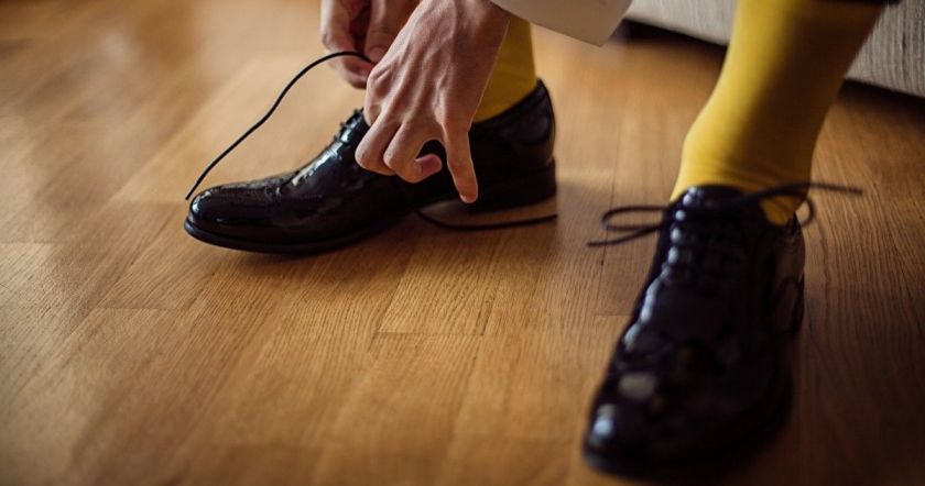 Антон Платонов протер тремя губками три пары обуви и заметил, что лучше всех блестят ботинки, протертые самой дешевой губкой. Чтобы понять, как долго будет держаться эффект, эксперт обдул обувь феном, чтобы имитировать ветер: