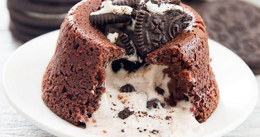Способ приготовления шоколадных кексов с жидкой начинкой: