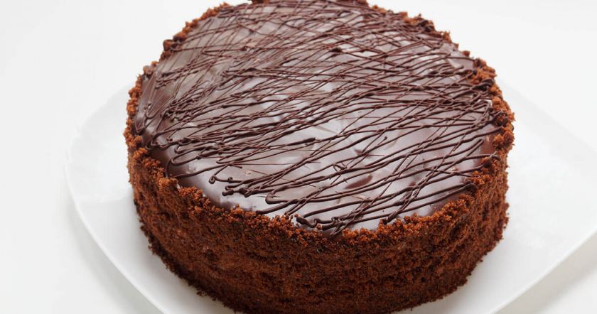 - Сверху торт залейте глазурью: вскипятите какао, сахар, воду. Когда слегка уварится, снимите смесь с огня и добавьте масло до полного растворения.