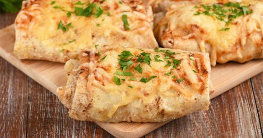 - Запекайте конверты из лаваша в духовке при 180°C в течение 35–40 мин.