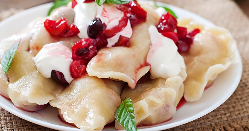 Вареники с черешней получаются очень сытными и вкусными. К столу их можно подавать со сметаной или сгущенкой.