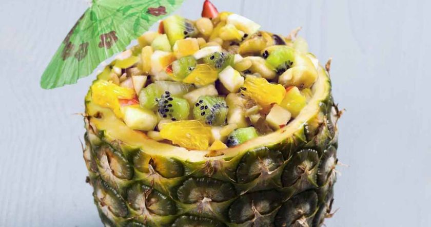 - Выложить салат в половинки ананаса.