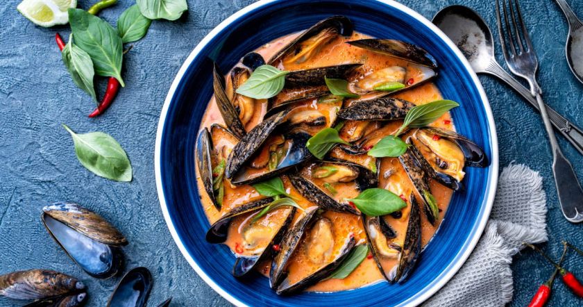 Как приготовить сочные мидии в кокосовом молоке с карри: