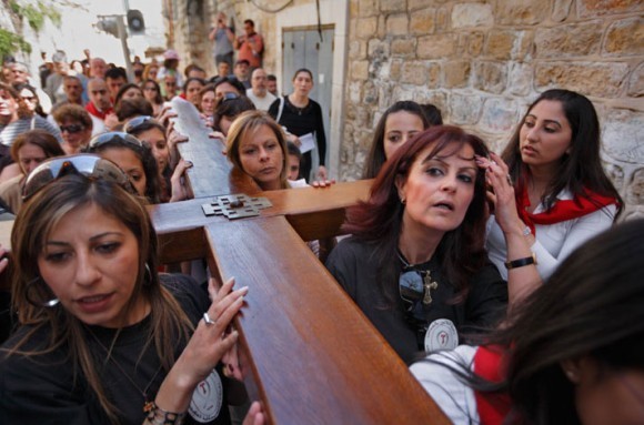 Иерусалим. Возложив на себя крест, арабские христиане, жители Иерусалима, присоединяются к толпам иностранцев в Страстную Пятницу (как по католическому, так и по православному календарю), следуя путем Иисуса через Старый Город. Бывшие некогда большинством, арабские христиане теперь составляют численно меньшую часть жителей, и с ними зачастую не считаются.