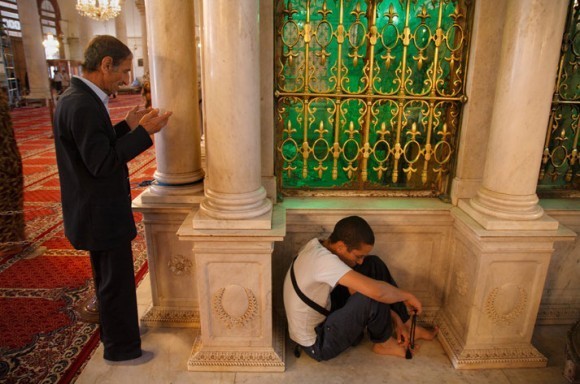 Сирия. Мусульманское богослужение на гробнице Иоанна Крестителя в Дамаске. В Сирии взаимодействие религий началось в VII в., когда арабы-мусульмане покорили земли христианской Византийской империи. Некоторые отцы Церкви даже принимали ранний ислам за разновидность христианства.