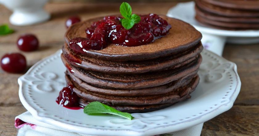 Шоколадные оладьи точно понравятся всем любителям десертов и, конечно, детям. Хотя готовится такое блюдо очень быстро и просто, результат всегда очень радует. Оладьи подойдут и на завтрак, и на полдник, и просто для чаепития. В состав по желанию можно добавить корицу, изюм или кусочки фруктов, так вкус будет еще более насыщенным.