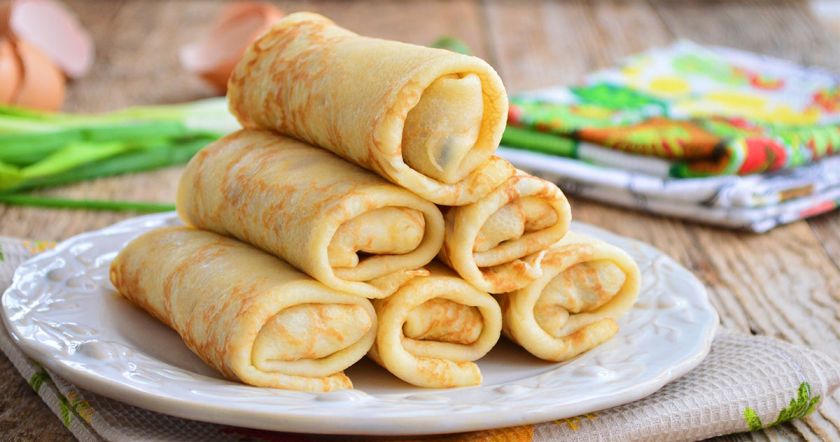 - Перед подачей блины с начинкой можно обжарить с двух сторон на сухой сковороде.