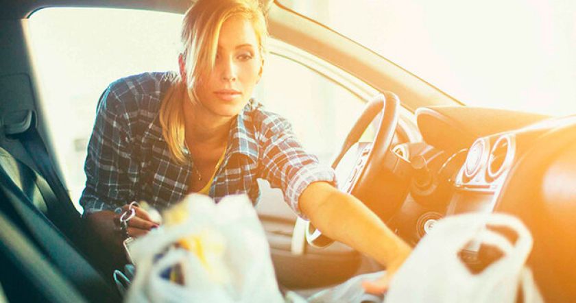 Лекарства, бутылки с водой, йогурты и другие продукты и предметы, которым не место в автомобиле летом, когда поездка завершена.