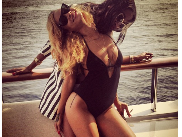 Рианна любит оголять свое тело ради провокационных снимков, этот раз не стал исключением – в черном купальнике знаменитость позирует вместе со своей подругой.