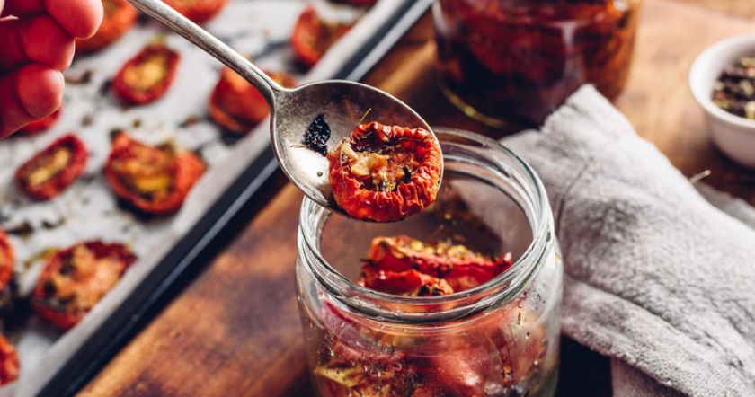 Узнайте, как приготовить вяленые помидоры в духовке, в дегидраторе или просто на солнце. У вас получится идеальная закуска, а также важный ингредиент для многих блюд вроде пасты, пиццы, супа и омлета, срок годности которого немного больше, чем у свежих помидоров. В герметичном контейнере в холодильнике они пролежат до 1 недели без масла или до 3 недель с маслом, а заморозить их можно на 3-6 месяцев.