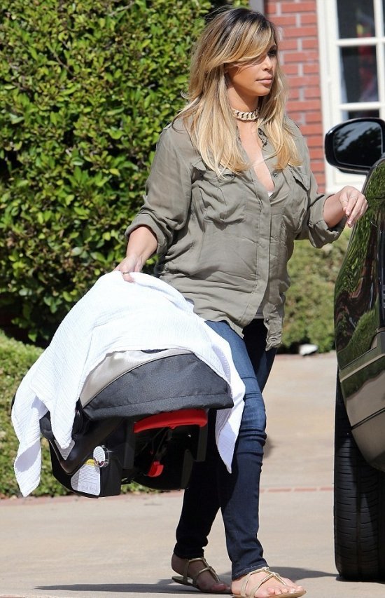 Главной проблемой для Кардашьян стала грудь. За время беременности она увеличилась в два раза до размера F, а сейчас бюст выглядит обвисшим, и этот факт очень печалит Ким. Звезда реалити-шоу уже подумывает о пластической операции, однако Канье Уэст против таких решительных мер, ведь его мать умерла после того, как решила подправить кое-что во внешности.