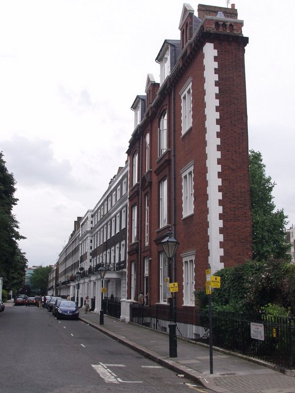 Тонкое здание, изображённое на фото, находится в Южном Кенсингтоне (South Kensington), в боро Кенсингтон и Челси (Royal Borough of Kensington and Chelsea) в Лондоне. Это здание оснащено внешним лифтом.